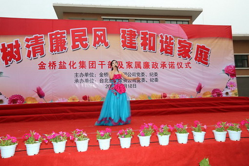 5月18日下午,集團公司在臺北鹽場投資公司舉行黨員干部及家屬“樹清廉民風(fēng),建和諧家庭”廉政承諾儀式,并進行了贈書儀式和豐富多彩的文藝演出。在文藝演出中,我公司職工自編自演的快板《廉政準(zhǔn)則送清風(fēng)》、女聲獨唱《守住清廉》、合作節(jié)目詩朗誦《清廉暢想》受到了觀看演出的各級領(lǐng)導(dǎo)和職工群眾的一致好評。(司宣 司紀(jì))