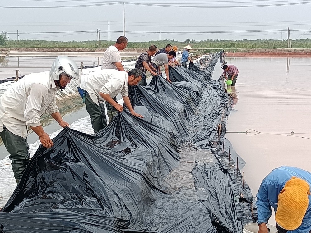 隨著主汛期到來,由于各班組部分塑布已達使用年限,老化嚴重,且容易造成鹵水跑漏現(xiàn)象發(fā)生,為了減少鹵水損耗,7月10日,新河制鹽分公司黨支部組織黨員突擊隊到班組對到期塑布進行更換。