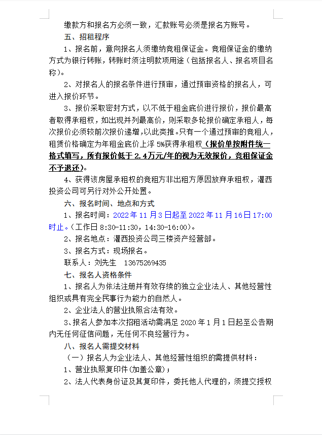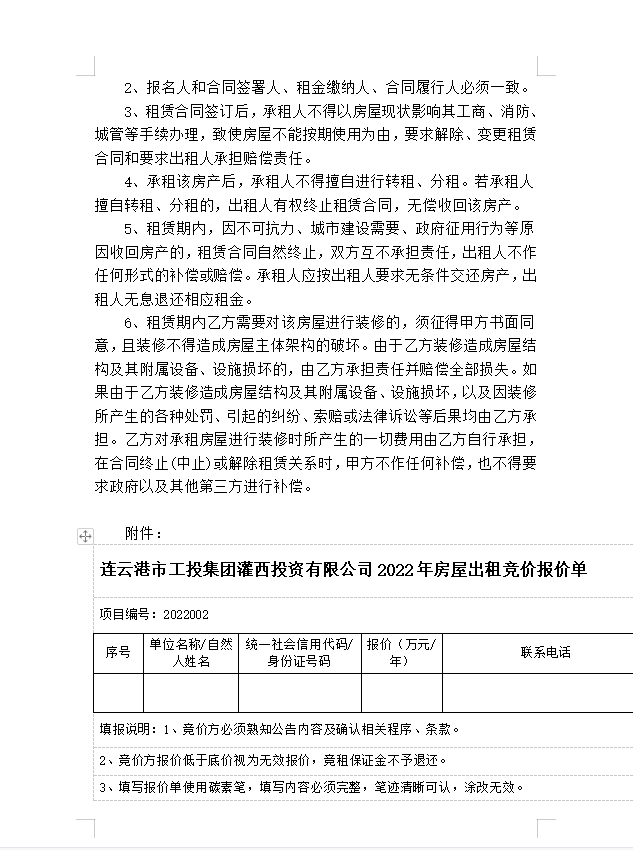 連云港市工投集團(tuán)灌西投資有限公司房屋對(duì)外公開招租公告