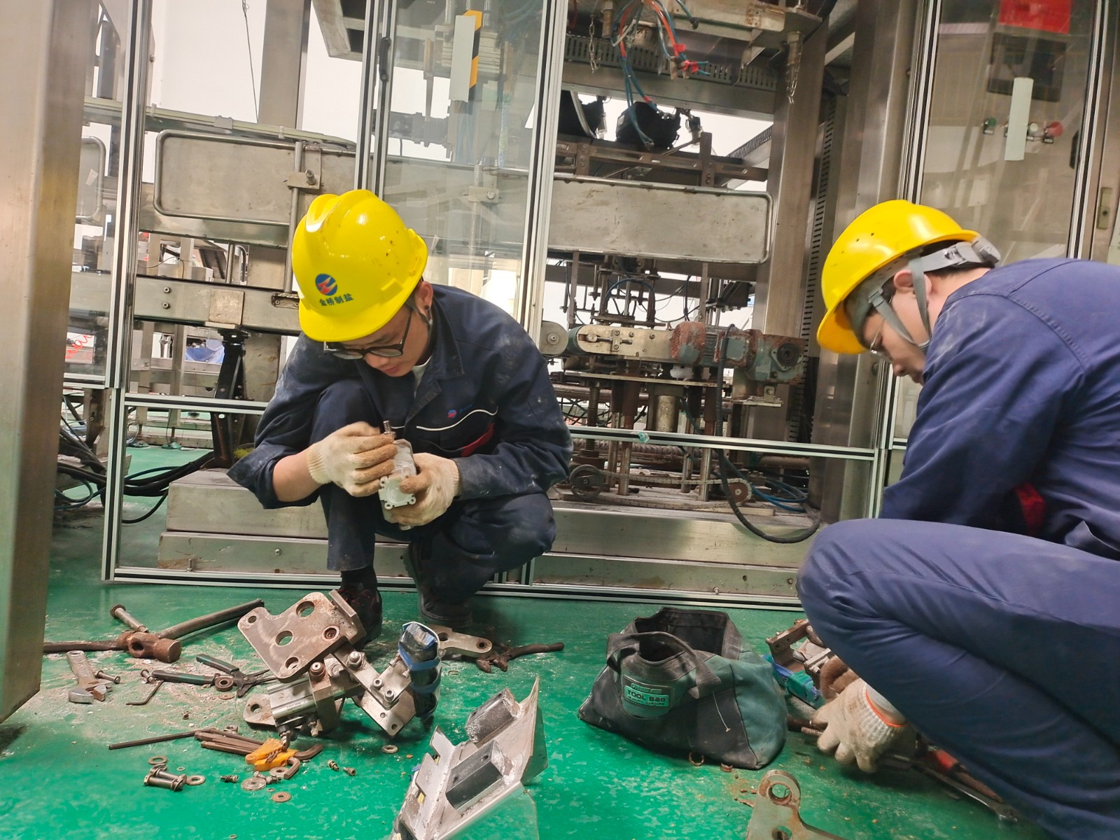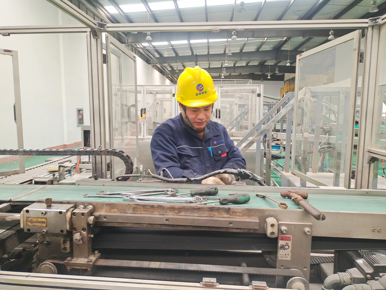 包裝鹽車間停產(chǎn)期間,為避免車間設備在后期生產(chǎn)時出現(xiàn)問題,王以知帶隊對設備進行維修保養(yǎng)。經(jīng)過分工,陳韓和王睿對裝袋機夾袋機構更換磨損軸承;趙新超對裝箱機伸縮頭導軌進行調(diào)整維護;王東海和秦榆旺對爬坡皮帶機檔條脫落的進行加固;最后,對電纜溝蓋板除銹上漆,使車間環(huán)境更加美觀整潔。(李竹垚)
