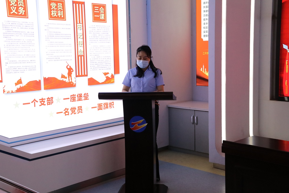隨后,支部書記徐兵為大家上了一堂題為“增強(qiáng)黨性修養(yǎng),筑牢使命擔(dān)當(dāng)”的專題黨課,他結(jié)合黨的歷史及當(dāng)前國內(nèi)國際局勢(shì),生動(dòng)的闡釋黨的革命精神和光輝歷程,旨在讓新黨員感受到了黨的神圣,進(jìn)一步激發(fā)黨員的愛國熱情和奮斗精神,激勵(lì)廣大黨員黨員以自身的實(shí)際行動(dòng)積極實(shí)踐誓詞,這堂黨課對(duì)于新老黨員們來說,都是一次寶貴的學(xué)習(xí)機(jī)會(huì)。黨課最后,支部書記徐兵帶領(lǐng)新老黨員一起,面向鮮紅的黨旗,舉起右拳,重溫入黨誓詞。