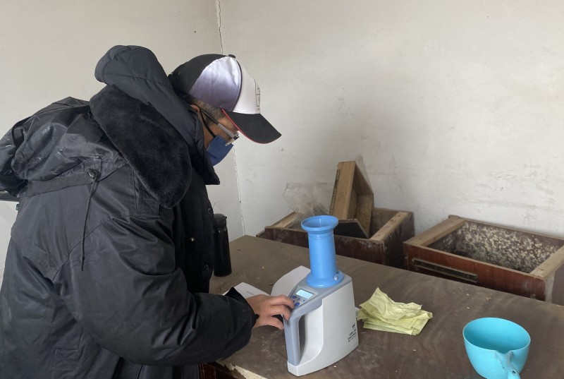 為確保糧食存儲安全和保障種植效益,大新農(nóng)場曬場測量人員深入曬場對種植戶糧食進行跟蹤測水作業(yè),為糧食安全儲存打造堅實屏障。(王璐)