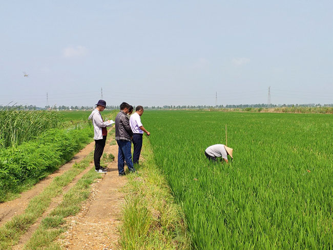 針對(duì)近期高溫高濕天氣,為做好水稻生產(chǎn)管理中期生產(chǎn)工作, 7月25日,農(nóng)場管理人員和農(nóng)技師頂著烈日深入田間地頭,對(duì)水稻基本苗的苗情苗量、病蟲害情況、中期水漿管理逐條田組進(jìn)行水稻中期生產(chǎn)檢查,對(duì)下一步的水漿管理和綜合防治提出指導(dǎo)意見,要求適時(shí)擱田,并于7月底至8月上旬進(jìn)行一次綜合防治。 (陳 ?。?/span>