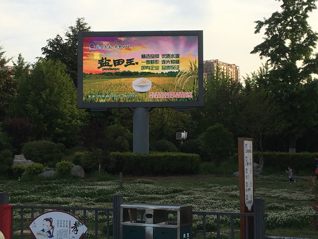 近日,米業(yè)營銷中心為了做好鹽田玉大米的品牌宣傳,在蒼梧綠園電子屏投放宣傳圖片。(劉楊)