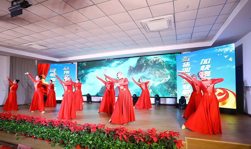 演出在舞蹈《東方紅》中拉開序幕,隨后,一個個歡快、喜慶、祥和的文藝作品相繼上演。其中,既有“立志不定,終不濟事”情景表演《朱熹家訓》,講述身邊星級員工的感人故事,也有大氣磅礴的男女對唱《不忘初心》和小合唱《小美滿》,展現(xiàn)公司青春活力的詩朗誦《向最美致敬》,凝聚力量,充滿活力的舞蹈《不忘初心》,展現(xiàn)員工生產生活和身邊故事的小品《生產再忙 安全不忘》《沒事找事》,《創(chuàng)新發(fā)展當先鋒》為主題的曲藝表演三句半,體現(xiàn)職工精神風貌和抒發(fā)愛國之情的歌頌祖國的歌曲《紅梅贊》《把最美的歌兒唱給媽媽》《領航》《最美的太陽》……最后,在全體星級員工合唱的《沒有共產黨就沒有新中國》中落幕,高潮迭起、精彩不斷,得到廣泛好評。