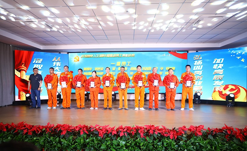 演出中,陳大壹、宋思雯、閆佳俊等十名新發(fā)展的中共預備黨員和新老黨員代表進行了現(xiàn)場宣誓,并合唱《我宣誓》。對公司黨委評選出的星級員工進行表彰,并對三星級員工進行了專訪。