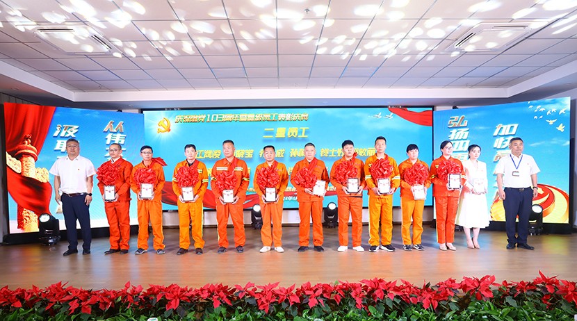 為鼓勵先進、創(chuàng)樹典型,進一步激發(fā)全公司廣大員工干事創(chuàng)業(yè)活力,不斷推動“ 敢為、敢闖、敢干、敢首創(chuàng)”在全公司上下蔚然成風,助力公司高質量跨越式發(fā)展。6月21日下午,臺北(華茂)公司“展風采·黨旗頌·強發(fā)展”星級員工頒獎文藝演出在環(huán)保裝備產業(yè)園圓滿落幕。公司領導班子,各單位、部門干部職工觀看演出,特邀請集團黨建人資、工會等同志到場觀摩指導。