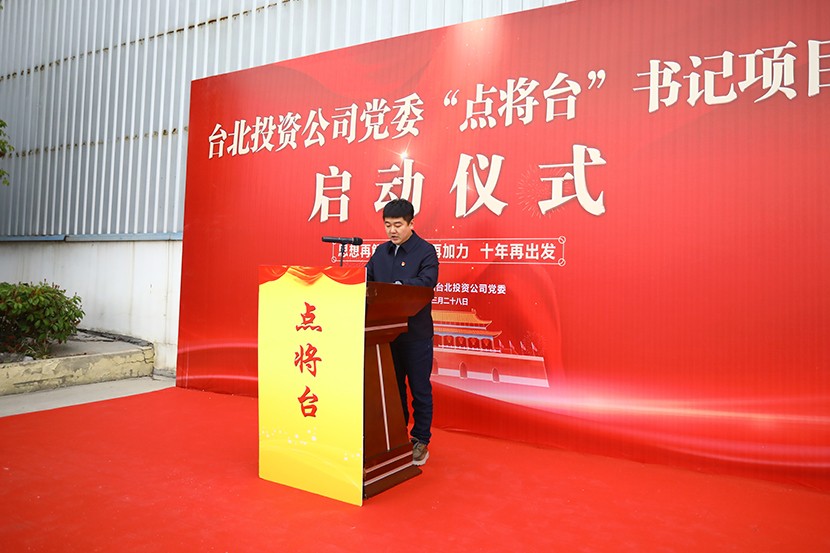 為以黨建引領(lǐng)破題開路,推動(dòng)公司改革發(fā)展,充分發(fā)揮黨組織戰(zhàn)斗堡壘作用和黨員先鋒模范作用,3月28日下午,臺(tái)北投資公司黨委順利舉行“點(diǎn)將臺(tái)”書記項(xiàng)目啟動(dòng)儀式。公司領(lǐng)導(dǎo)、各單位(部門、項(xiàng)目部)負(fù)責(zé)人、各單位副書記、“三將”選樹人員等參加活動(dòng),公司紀(jì)委書記朱兵主持啟動(dòng)儀式。