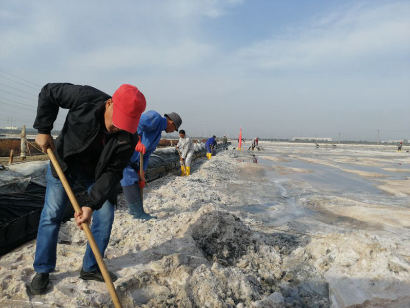 大浦工區(qū)將黨日活動(dòng)開(kāi)到了生產(chǎn)一線(xiàn),在二組灘頭全體黨員面對(duì)黨旗重溫了入黨誓詞:“我志愿加入中國(guó)共產(chǎn)黨,擁護(hù)黨的綱領(lǐng),遵守黨的章程………”一字一句鏗鏘有力、滿(mǎn)懷激情,進(jìn)一步增強(qiáng)了黨員責(zé)任感和使命感,提高了黨組織的凝聚力和戰(zhàn)斗力。在隨后黨員突擊隊(duì)穿好勞動(dòng)護(hù)具,做好安全措施,立即投入到扒鹽工作中。大家分工合作、協(xié)同配合,在晶瑩剔透的鹽池里盡情的揮灑著汗水。據(jù)悉,本次突擊人工扒鹽,面積230公畝,扒鹽量達(dá)3500噸,可為企業(yè)增收70萬(wàn)元。