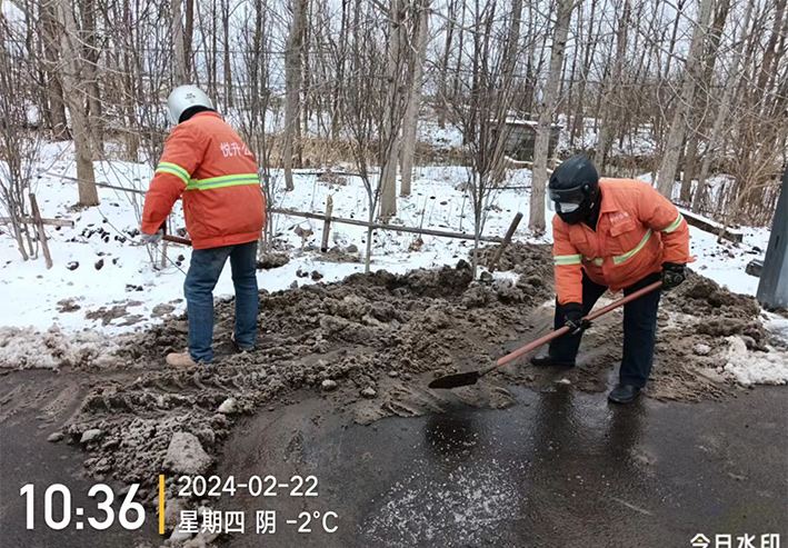 寒雪無(wú)情,人間有情,該公司黨員干部齊上陣,60余人奔赴道路一線開展清冰掃雪工作。按照“先主后次、先內(nèi)后外、先陡后平、先重點(diǎn)后一般”的順序,對(duì)轄區(qū)內(nèi)主干道、幸福家園周邊等地的冰凍積雪進(jìn)行集中清理。在幸福家園小區(qū)清掃現(xiàn)場(chǎng),大家不懼嚴(yán)寒、干勁十足,手里拿著鐵鍬、掃帚等清掃工具,相互配合,對(duì)路面上的積雪、積冰進(jìn)行清掃鏟除,經(jīng)過大家持續(xù)奮戰(zhàn),冰雪覆蓋的路面被打掃的干干凈凈,為小區(qū)居民的出行安全帶來(lái)了保障。