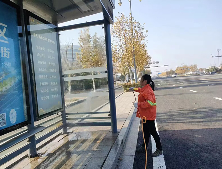 該分公司百余名一線保潔人員,無懼徐圩初冬低溫天氣,道路兩側(cè),公交站臺,三人一組,兩人一對在班長帶動下,揮動手中大掃把,上下擺動拖把,人工清掃輔道落葉2000多米長,清洗站臺30多個,徒手擦洗座椅60多個,清倒果皮箱200多個;突擊轉(zhuǎn)運(yùn)園區(qū)施工垃圾300袋,有力保障途經(jīng)道路環(huán)境整潔靚麗;大型車輛整裝待發(fā),持續(xù)三天加班加點(diǎn),7時許準(zhǔn)時加滿車廂用水,安全有序到達(dá)指定路段,20臺大中型清掃沖洗車輛作業(yè)臺班達(dá)4個以上,為成功完成此次大保障有力彰顯機(jī)械強(qiáng)大功能。