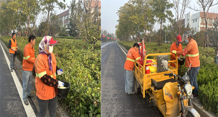 ? ? ? 工作中,班長(zhǎng)李洪利、副班長(zhǎng)李明春,帶領(lǐng)綠化班組30余人,對(duì)云港路、祥和路仁和路,進(jìn)行施肥作業(yè)?!皥@林衛(wèi)士”手拿施肥工具,2-3人為一小組,采用徒步拋灑方式進(jìn)行作業(yè),縱三路的側(cè)分帶雪松,因長(zhǎng)勢(shì)不良土壤環(huán)境因素,為重點(diǎn)施肥對(duì)象。云港路路線較長(zhǎng),采取分段作業(yè),重點(diǎn)突破。經(jīng)過(guò)一天的忙碌,完成既定路段的施肥任務(wù)。